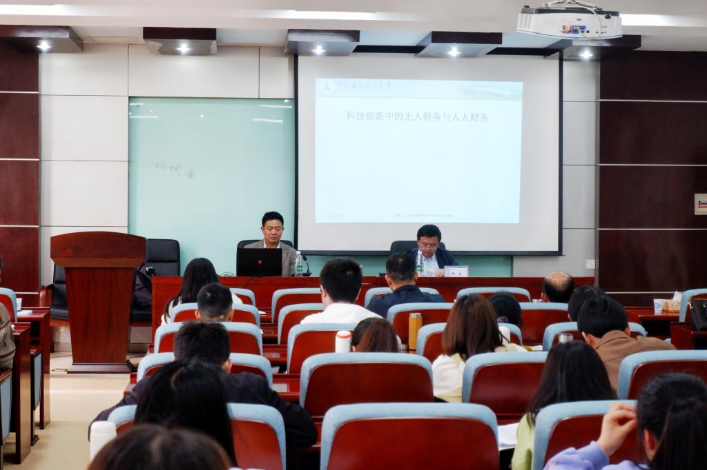 2021年4月29日上午10点30分,中南财经政法大学会计学院张敦力教授应我院邀请,在金盆岭校区七教212进行了“新技术环境下的无人财务和人人财务”的学术讲座。经管学院副院长张新华教授、计财处副处长郑永生副教授、部分老师以及80余名硕博士研究生参与了本次讲座。本次讲座由经管学院副院长王治教授主持。