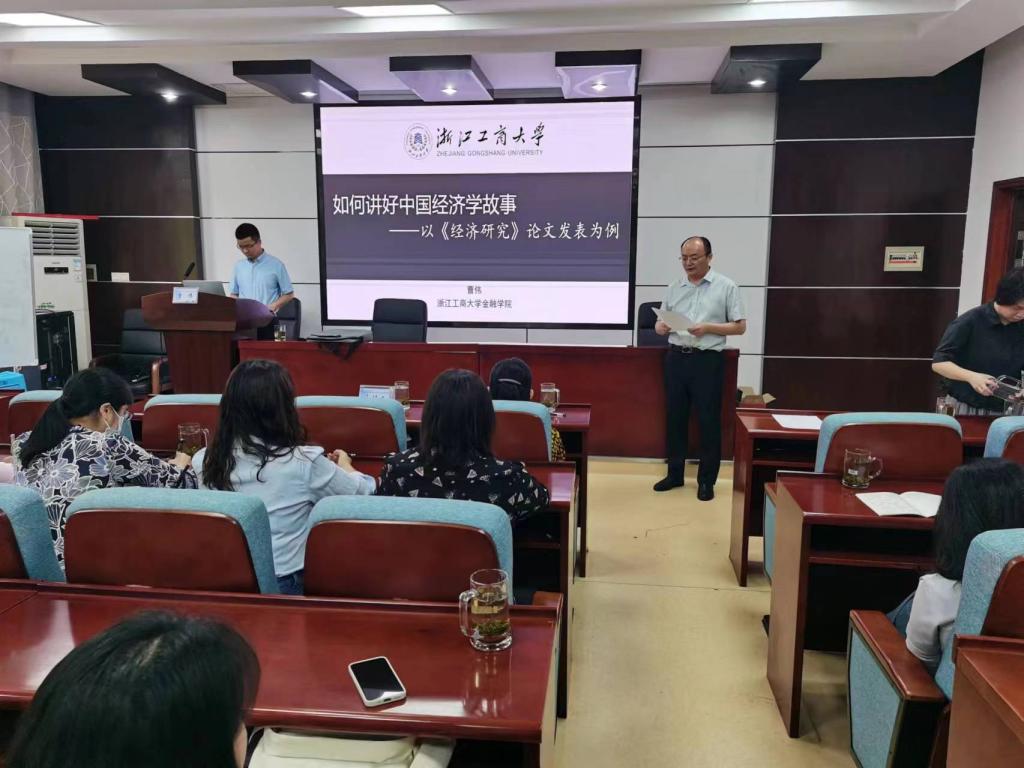 2023年5月26日上午,青年教师教学与科研能力提升沙龙(第18期)在金盆岭7教212室举行,我院优秀校友、浙江工商大学金融学院副院长、博士生导师曹伟教授为我院师生做题为“如何讲好中国经济学故事——以《经济研究》论文发表为例”的报告。副院长刘坚、王治以及学院师生近100人参加了本期沙龙。本期活动由副院长(主持工作)彭新宇主持。