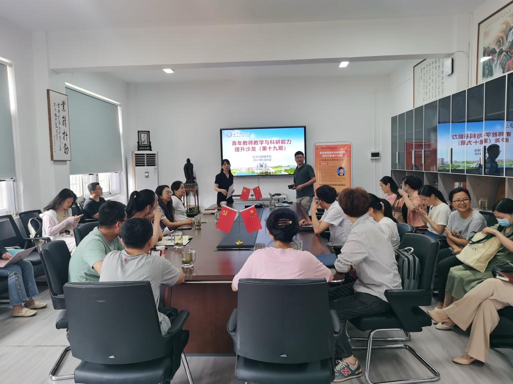 6月4日下午三点,青年教师教学与科研能力提升沙龙(第19期)在金盆岭办公大楼207举行。学院党委书记丁丹及学院师生共计40余人参加了本期沙龙,副院长刘坚主持。