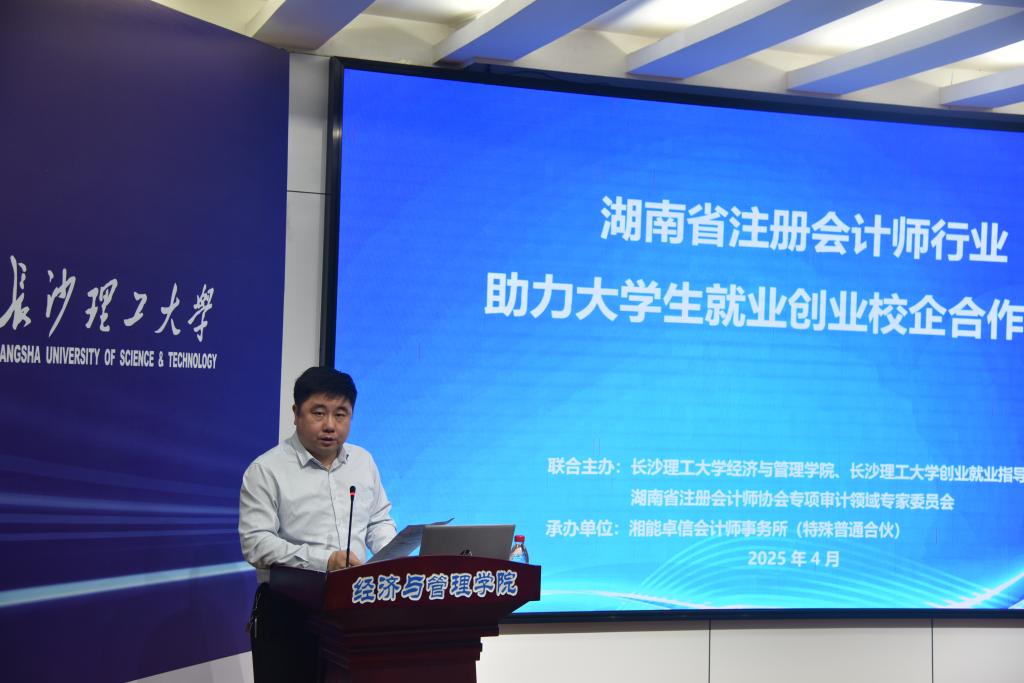 湘能卓信首席合伙人文灿(兼专项审计领域专家委员会主任委员)详细介绍了校企合作方案,包括实习就业计划、校外导师计划、“行业先锋进校园”活动及产学研深度融合等内容。他特别提及了湘能卓信与LETOU体育平台的深厚渊源,并表示将通过此次合作为学生提供更多实践机会和职业发展平台。