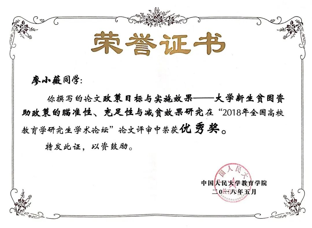 ☑ 获全国高校教育学研究生学术论坛“优秀论文奖”(2018.5)