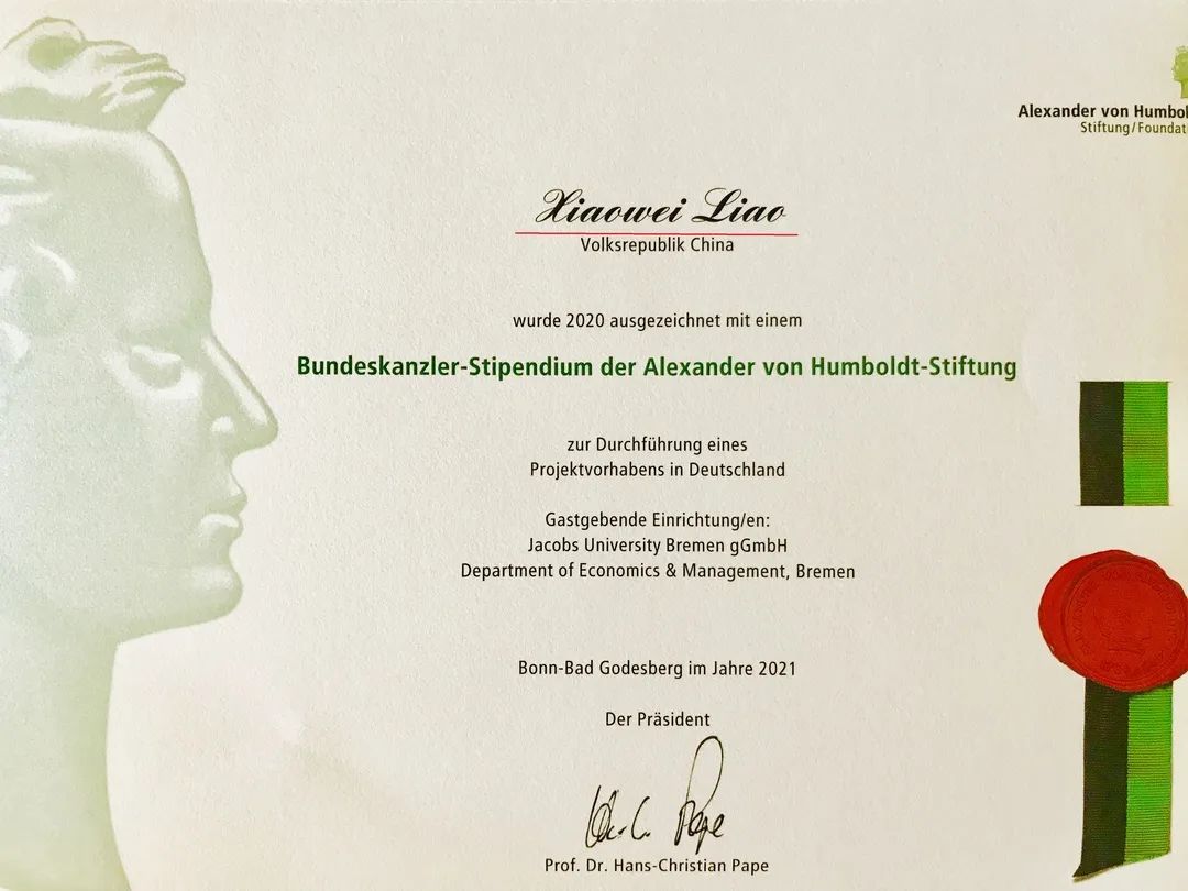 ☑ 获德国联邦总理奖学金,成为该期获此殊荣的全球50名青年获奖人之一,并在德国总理府接受时任总理默克尔的接见(2021.07)