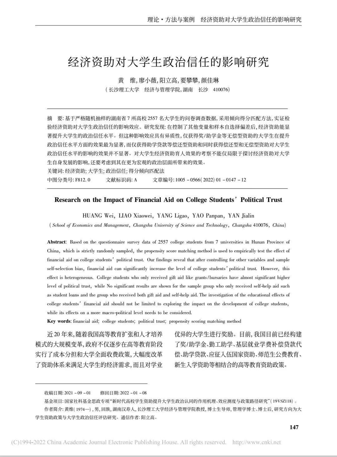 1.2022年以第二作者在《中国软科学》上发表《经济资助对大学生政治信任的影响研究》(管理学A类期刊)