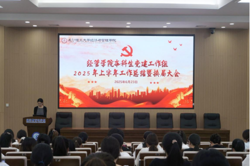 6月23日下午,经管学院本科生党建工作组在经管大楼100报告厅举行2025年上半年工作总结暨换届大会。本次会议由党建工作组学生干部叶可可主持,党建辅导员叶鑫及工作组全体学生干部参加会议。
