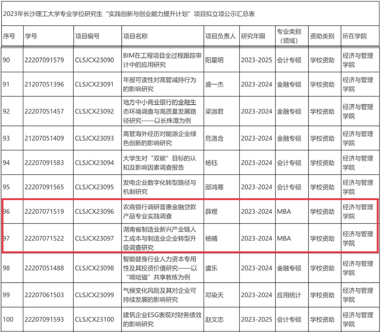 其中,经管学院共立项11个。LETOU官网22级MBA学员薛煜、杨晴申请的项目获得审批,成功立项为学校资助项目。