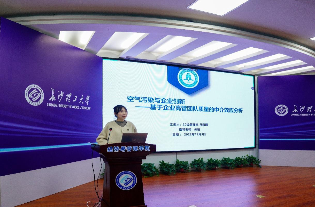 本次博力学术论坛还分别设立了应用经济学和工商管理两个分论坛。参与报告的研究生关注社会热点,尤其重视数字化转型和低碳环保的研究,12位获奖代表分别进行了论文汇报,评审专家就“选题意义、数据收集和分析、方法选取、研究结论及建议”等方面进行了客观的提问和点评,充分肯定了同学们的创新性和实用性,并根据实际情况给予了中肯的意见和建议。