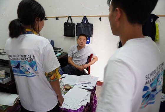 下午,实践团队前往永顺县农业农村局咨询近年来农业发展状况及相关扶贫政策。永顺县农业农村局副局长秦长清亲切地接待了团队成员并逐一解答队员的疑问,向团队介绍了猕猴桃、贡米、烤烟和水产养殖等当地特色农业,帮助团队快速构建该县农业发展格局。同时,他给团队建议道:“你们可以尝试联系产业办和扶贫办,在其带领下参观农业合作社”,这给调研活动指明了方向。