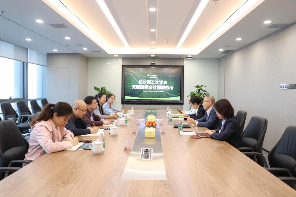在天职湖南分所会议室,所长刘智清、副所长刘宇科、咨询合伙人肖红英、人力资源主任黄璐热情欢迎学院老师们的到来,详细介绍了公司近年来在业务领域取得了可喜成绩。刘智清认为,长理经管学院的毕业生专业素质强,在天职工作期间成长快,公司把长理经管学院视为校招选才的重要基地。王治介绍了学院财务管理和会计专业的建设情况以及教学改革的最新动态。唐青介绍了毕业生的生源信息概况,感谢公司对学校学院的认可。随后,校企双方就校外导师聘任、23届毕业生的就业推荐以及24届毕业生的实习实践等合作事宜进行洽谈,并达成了意向。