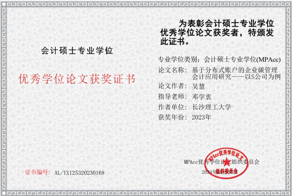 LETOU官网会计专业硕士吴慧同学荣获2023年全国MPAcc优秀学位论文奖