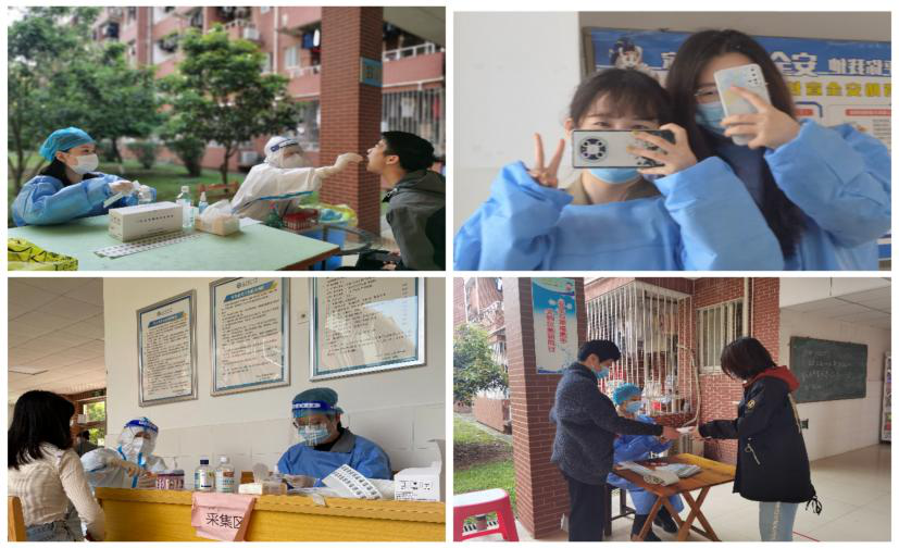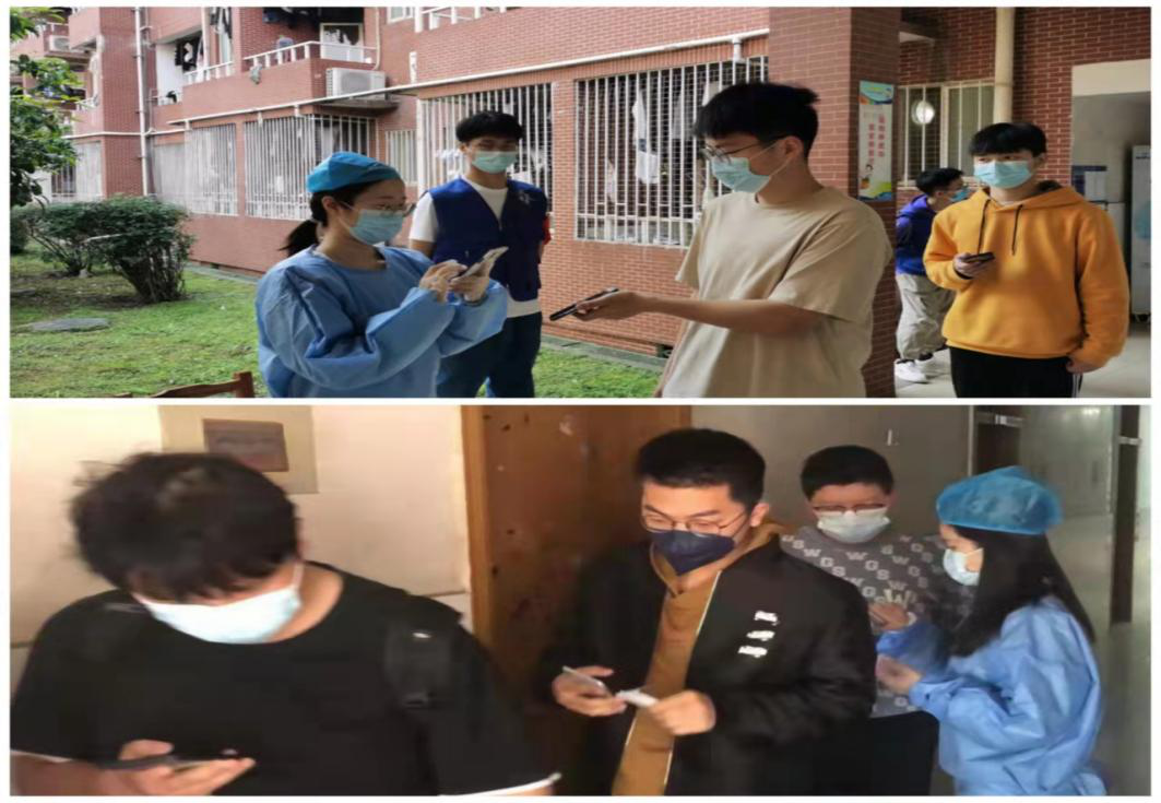 党员方沙、罗颖琳、陈运桂、肖宏在云塘校区协助核酸检测工作