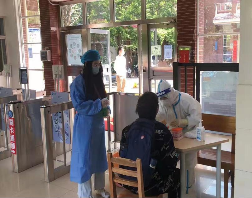 党员先锋岗黄滢臻、李舒颖在云塘校区协助核酸检测工作