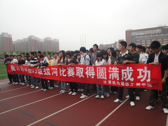 为提高大家的身体素质,丰富校园文化活动,增强同学之间的交流与友谊,发扬“团结友爱、互帮互助”的精神,提倡多运动、多锻炼,经过计通学院09级学生会的积极筹备,计通学院09级学子于5月17日中午举行了“拔河比赛”。赛前09级辅导员任志祥老师发表讲话,对09级学生会的用心组织安排给予肯定,指出这是09级学生第一次独立举办这个活动,鼓励大家认真比赛,祝大家取得好成绩。比赛中,大家热情高涨、细心配合、咬牙坚持,啦啦队的加油助威声排山倒海。本次比赛,各队公平竞争,赛出了风格,赛出了水平,展示了09级学子蓬勃向上的精神风貌和良好的身体素质,相信09级学子一定会将比赛中表现出来的自信、从容、永不放弃的精神带到学习生活中去。