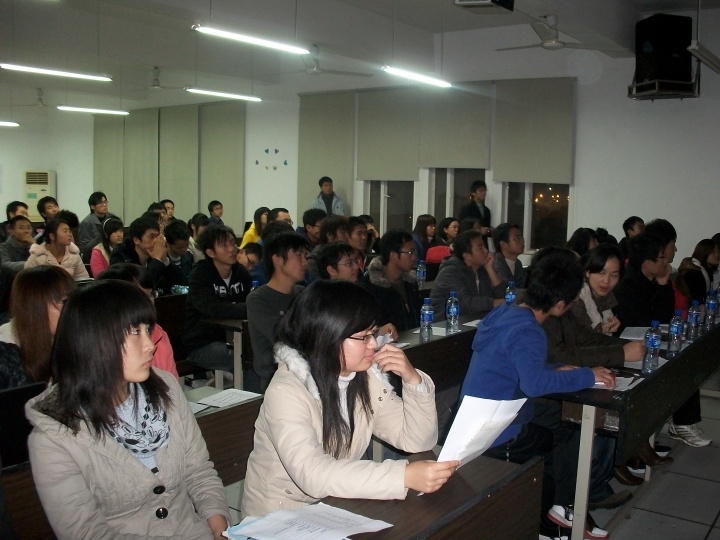 此次PPT大赛以“勇于超越,创新实践”为主题,从12月1号拉开比赛,分别于1号、2号在汀香园、甘怡园设报名点,至截止日,共收集到100多份参赛作品。经过社团干部公平、公正、公开的初选,选出了11份优秀作品参加决赛。在 8号、9号两天中,入围选手带上自己心仪的作品在甘怡园汀香园向全校师生展示自己的作品,同时为自己的作品拉人气。最终由文艺和杨智强两位同学共同完成的作品《王力宏》荣获“最佳人气奖”。