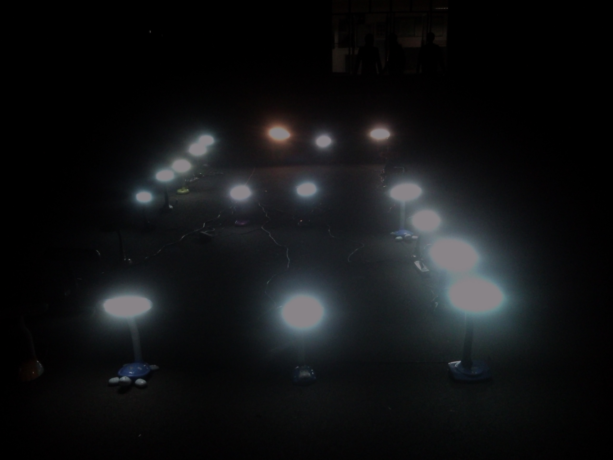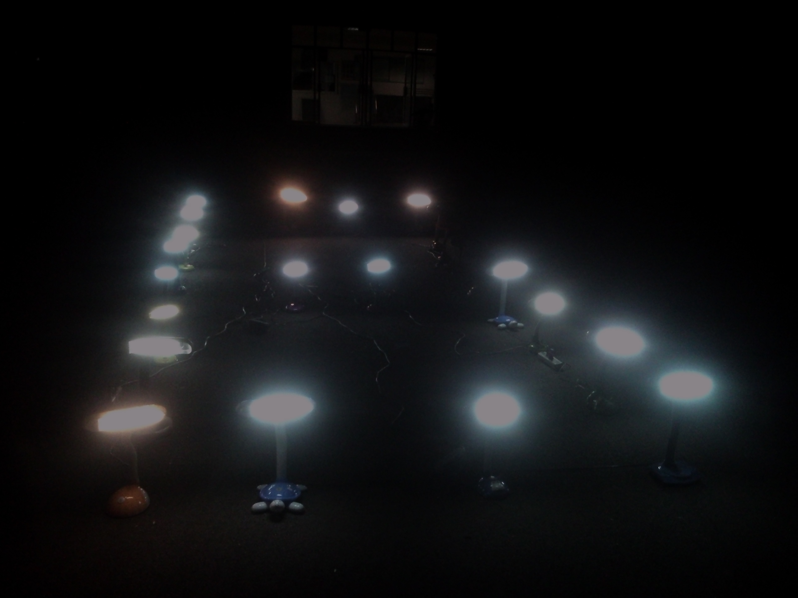 晚上7:30分,青志协的志愿者们将23盏台灯在弘毅轩4栋门前摆放成数码管模样,以倒计时的方式来表达环保理念。当一个个数字映入我们眼帘直到零,所有电灯熄灭,这一刻我们处在黑暗中,我们知道了电灯的重要,也知道了低碳环保的生活才是惬意的生活。