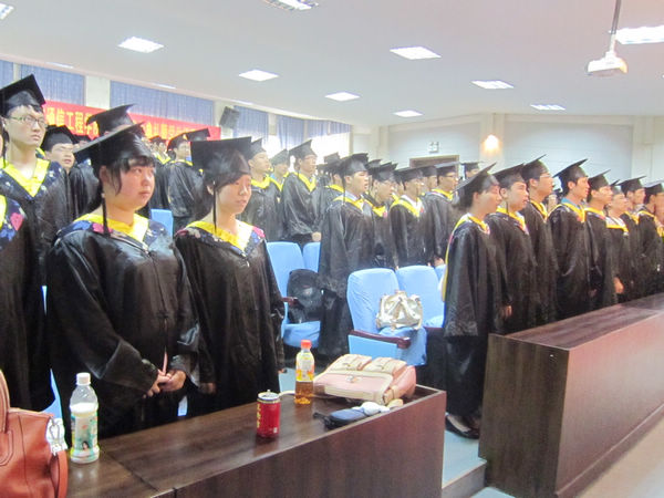 紧接着,是学位授予环节,院领导为2012届全体毕业生一一颁发学位证,全体毕业生依次上台,从师长手中接过象征四年学业硕果的学位证,并合影留念。整个仪式井然有序,洋溢着欢欣喜庆的气氛。
