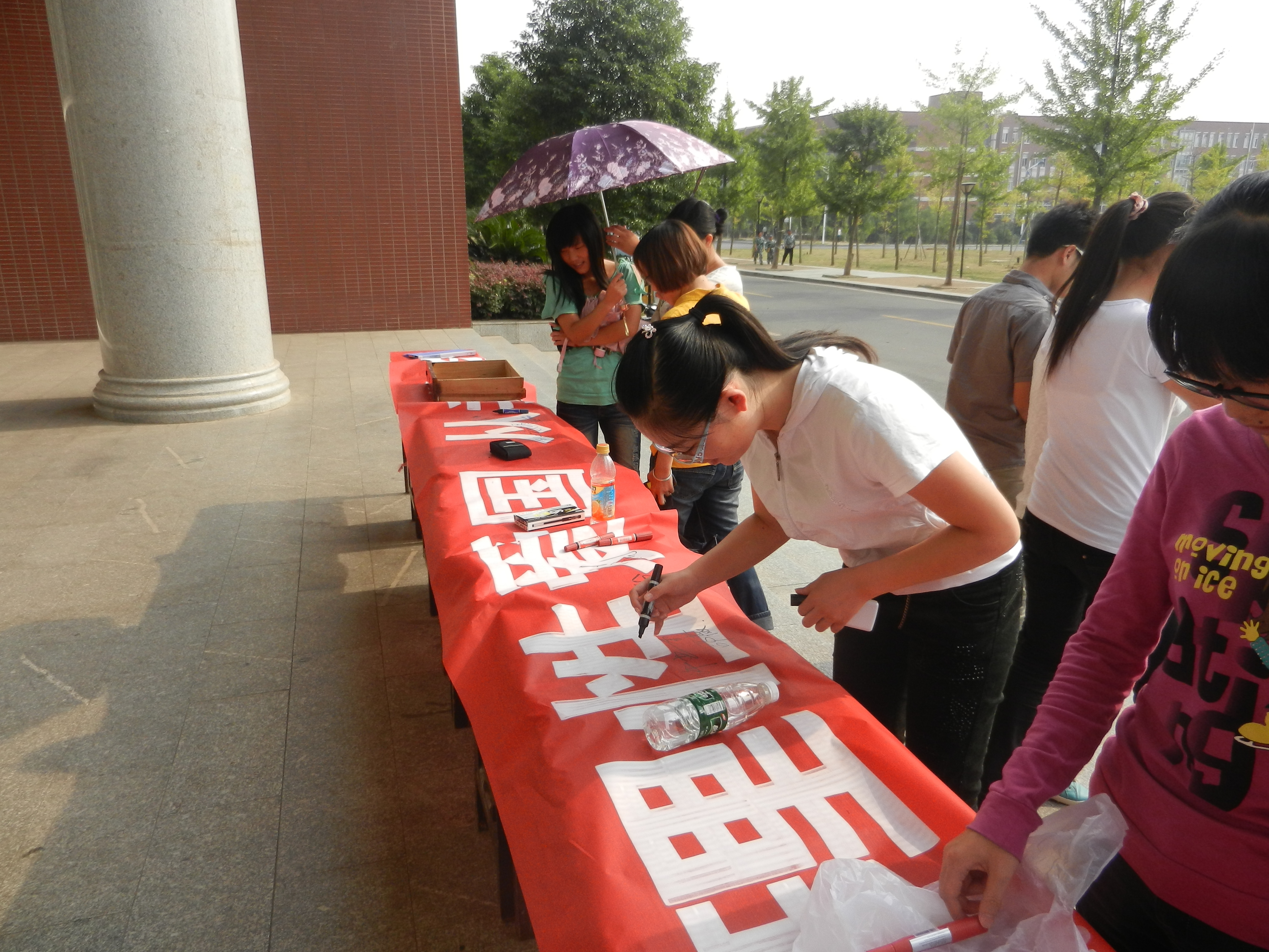 看完《东京审判》后,计通学院在综合教学门前进行“遵纪守法 认真学习 理性爱国 从我做起”签名活动,各班同学都郑重的签下姓名,签下对祖国的承诺,承担起属于自己的责任与义务。
