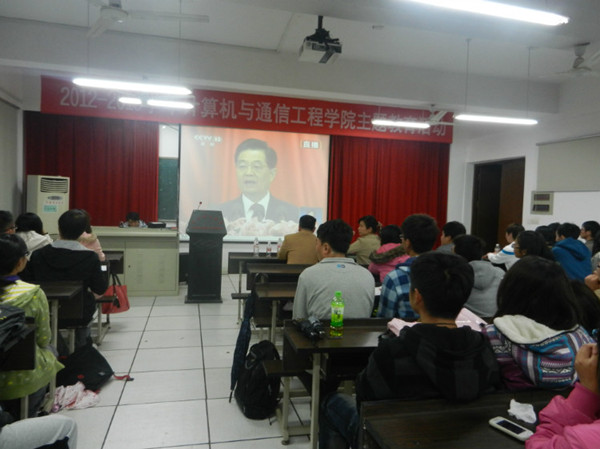 之后全体学生干部观看了胡锦涛书记在十八大开幕式上的报告,共同学习党的十八大精神。