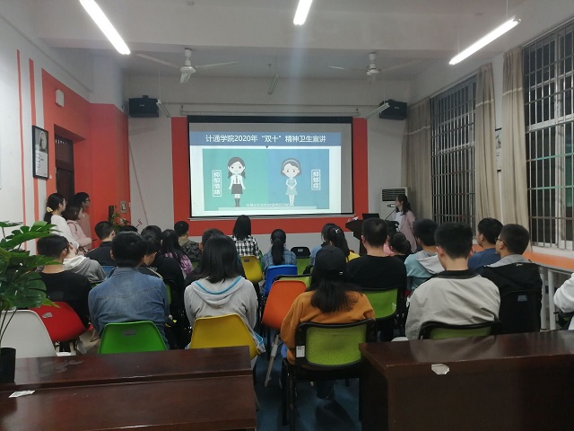 2020年10月10日是第29个“世界精神卫生日”,国家卫生健康委将“弘扬抗疫精神,护佑心理健康”作为第29个世界精神卫生日的主题。19:00,计通学院云塘校区理科楼B103团体辅导室开展宣讲活动,以促进同学们对心理健康的关注提升科学有效的心理健康应对能力,并学会及时寻求心理援助