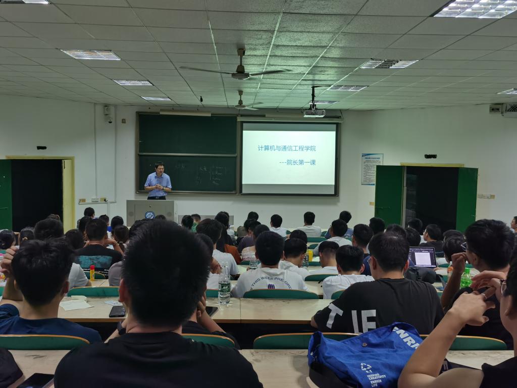 2021年9月7日晚7点,计算机与通信工程学院2021级研究生新生教育之院长第一课在金盆岭校区6栋教学楼312教室顺利举行。计通学院院长张锦、副院长何施茗为2021级研究生新生讲授了精彩的开学第一课。计通学院2021级全体研究生通过线下的方式认真聆听了此次讲座。