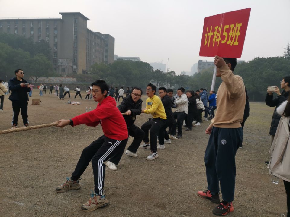 在围观同学此起彼伏一声高过一声的加油呐喊中,场上队员各个拼尽全力,咬紧牙关,势为集体贡献全部力量。长绳上的红结牵动着所有人的心,形势一次次进入胶着状态,而各年级辅导员在一旁的“放话助威”也为比赛增加了不少看点。经过激烈角逐,最终,研究生代表队拿下了第一名的好成绩,19级大数据1班和计算机类2009班分获第二名第三名,18级和21级获得优胜奖。