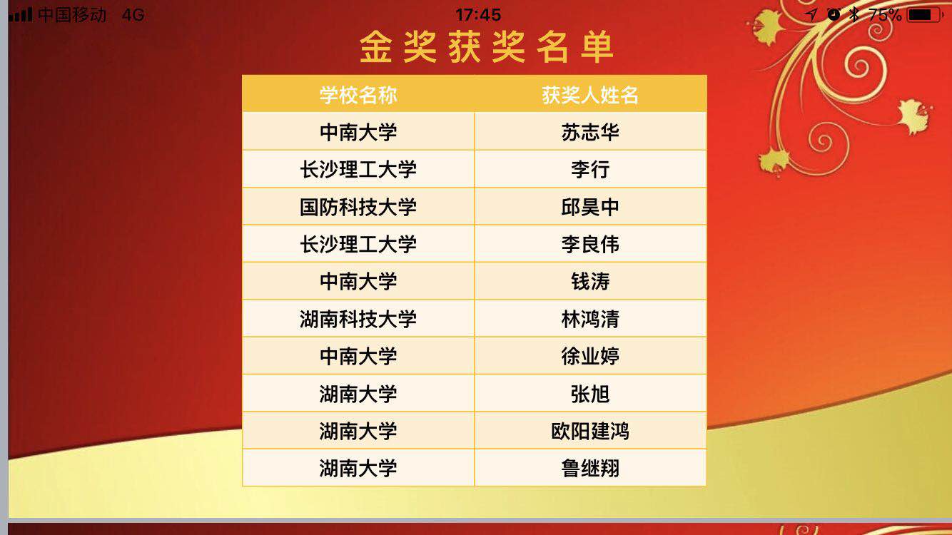 此次大赛共设三个奖项,我院多名学子上榜。金奖的获得者为李行、李良伟;银奖的获得者为黄佳明、刘鑫和李嘉豪;铜奖的获奖者为梁宇、曾国庆、李文龙、张琚亮、李永琦、潘成、沈佳洋、谢佳宏。