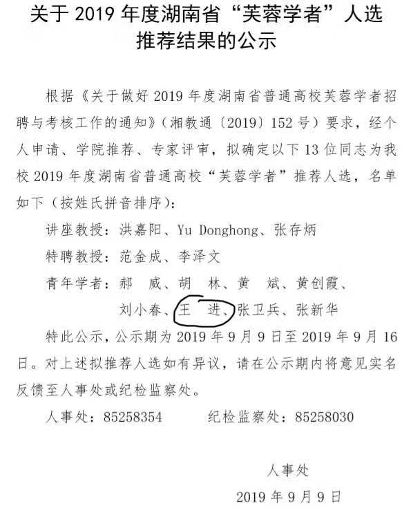 这份教师节礼物他们担得起——我院王进教授入选“芙蓉学者”推荐名单、陈曦教授获评师德标兵