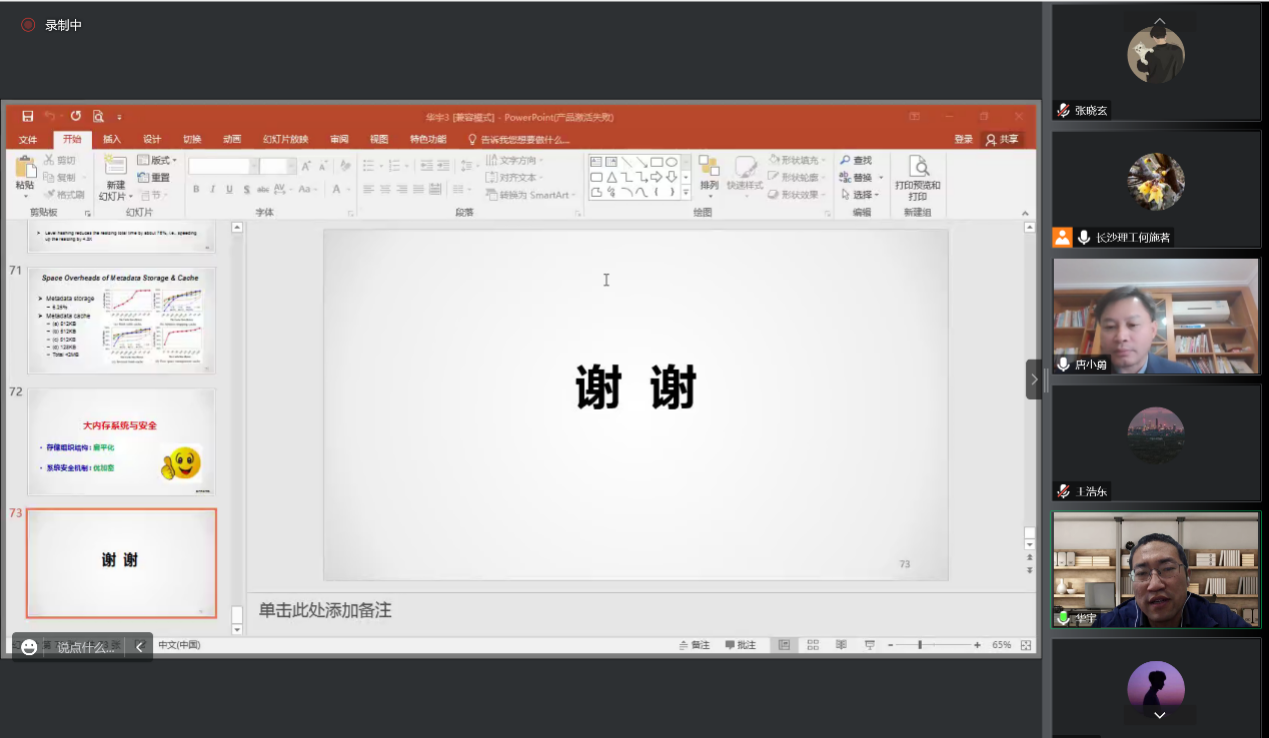 2022年11月23上午10点整,计算机与通信工程学院组织的第九期云峰论坛之前沿论坛在线上会议室拉开帷幕。华中科技大学华宇教授担任本次前沿论坛的汇报人,主题为大内存系统与安全。