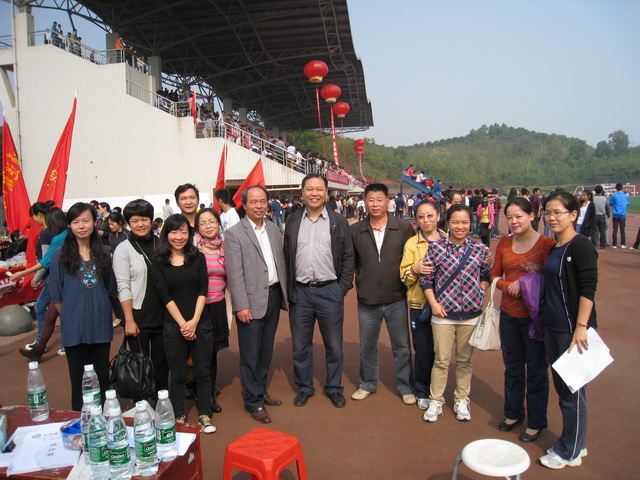 学院徐学军书记、李峰院长、方碧波副书记等院领导到赛场慰问了参赛的教师及工作人员并与大家留影纪念。我院运动健儿满怀激情,斗志昂扬,激战校运。廖年冬、王新、史长琼、吴建华等十余位教师代表我院参加了男女各年龄组的十四个项目的比赛,其中谌海军分获男子跳远第一名、跳高第五名,蔡烁分获男子跳高第五名、跳远第六名,王伟征获男子甲组