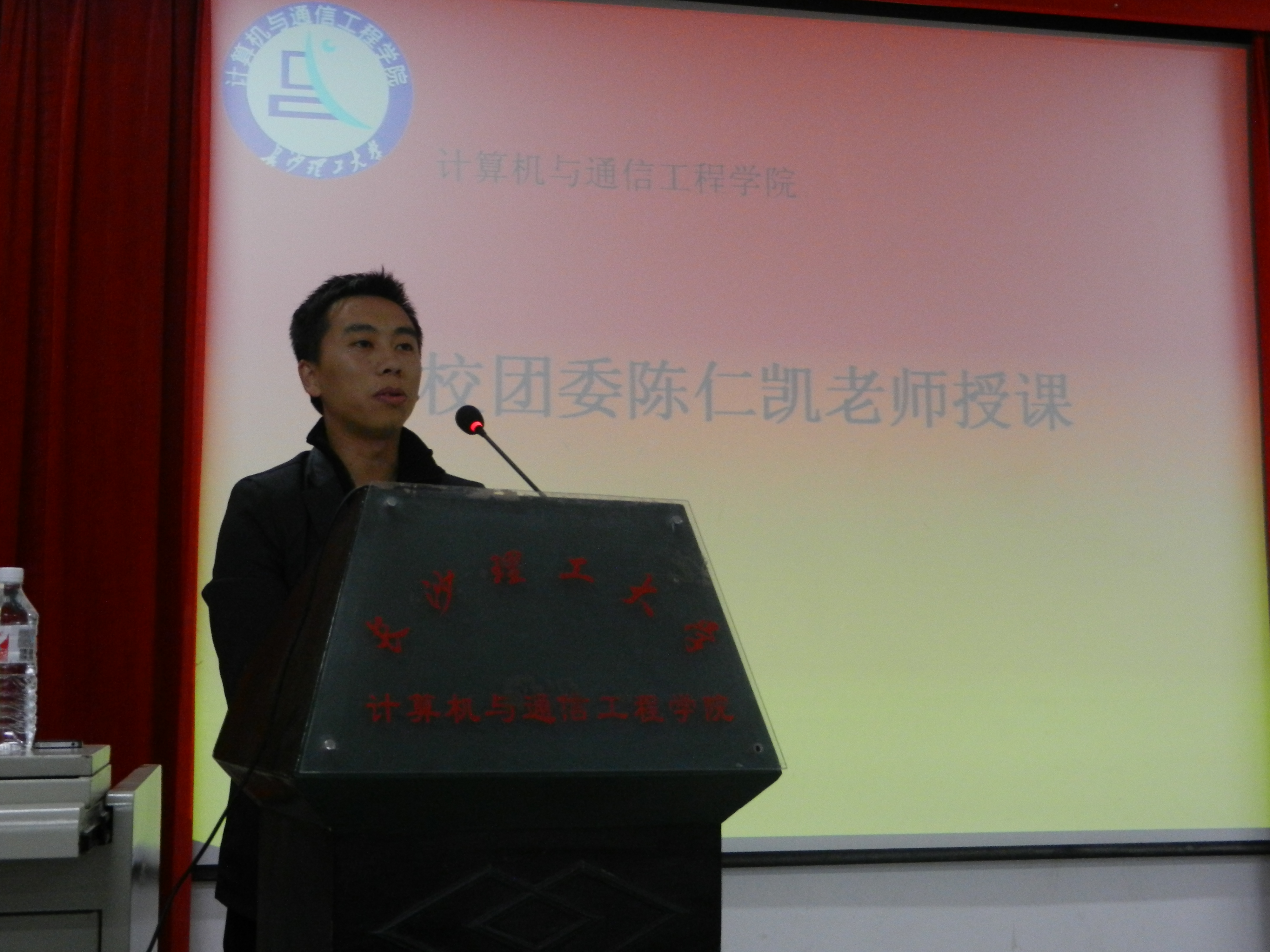 为提高学生干部能力素养,树立学生干部模范带头进带动后进,以部分带动整体,引领广大学生深入参与2012-2013学年主题教育活动,全面发展,10月30日晚,计算机与通信工程学院邀请校团委陈仁凯主任在理科楼B311为全体学生干部进行2012-2013学年首期干部培训,授课题目为《学生干部的思想力和执行力》。学院党委书记徐学军教授,副书记方碧波副教授到进行指导,关工委副主任雷理成老师,学工办禹敏老师、张智敏老师出席。