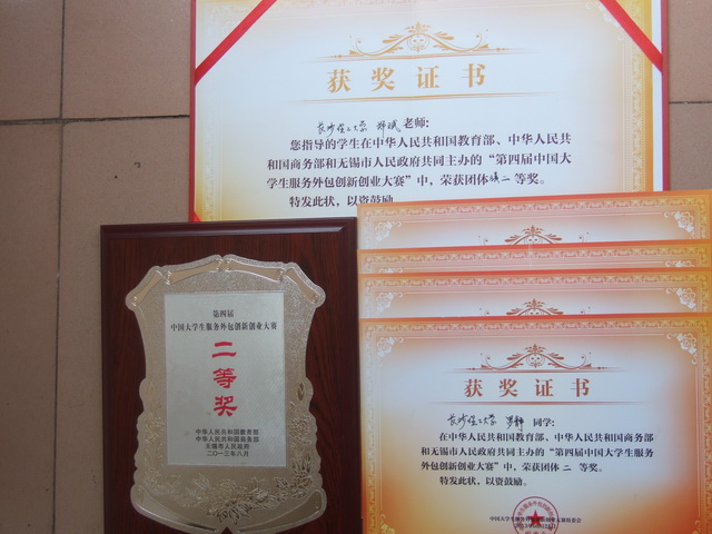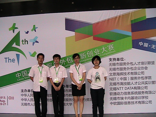 第四届中国大学生服务外包创新创业大赛由教育部、商务部和无锡市人民政府共同主办,于8月20-22日在无锡市太湖国际博览中心举行。LETOU官网计算机与通信工程学院郑斌、黄敏两位老师指导的学生(罗静、张洪龙、李平、匡姝)在第4届中国大学生服务外包创新创业大赛中荣获团体二等奖!