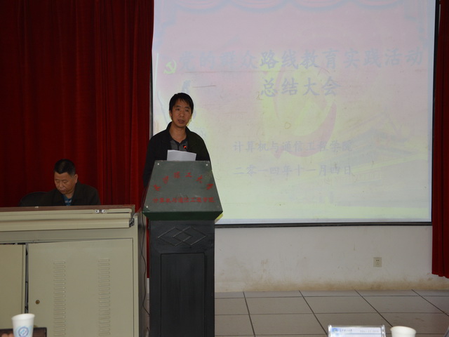 学校副校长叶泽在讲话中谈到了自己的感受。他指出:“通过群众路线教育实践活动的开展,体现了计通学院党员素质比较高,党员同志们能从大局出发,对学院领导班子工作的支持与理解.计通学院在党的群众路线教育实践活动开展过程中,取得了一定的成果,并已经初见成效,希望学院在领导班子带领下,凝聚一心,巩固活动的成果。”