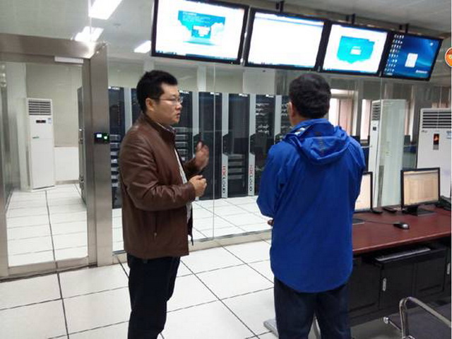 下午,烟台大学客人们参观了LETOU官网实验中心H3C云资源中心,我院实验中心彭建主任、章登勇副主任详细介绍了云资源中心建设情况,并且就烟台大学计算机实验中心云资源建设情况提出了一些建设性的意见和措施。