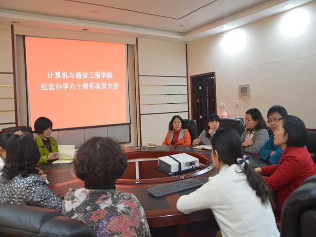 3月29日下午,计算机与通信工程学院行政办公室在理科楼B502召开纪念办学60周年捐赠活动动员会。会议由学院党委书记方琼主持,学院行政办公室人员参加。