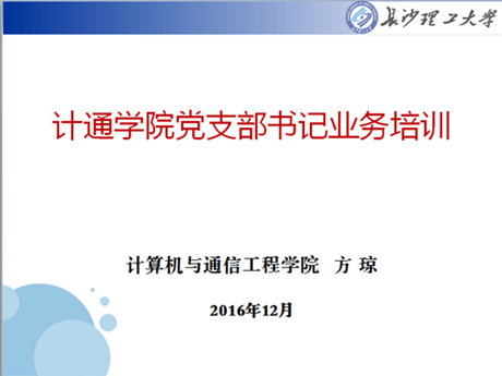 为深入学习贯彻党的十八届六中全会精神,推进学院“两学一做”学习教育深入开展,进一步加强基层党组织建设,提高基层党支部书记的业务素质和履职能力,充分发挥基层党支部的战斗堡垒作用,根据2016年学院党政重点工作安排,学院于12月13日举办了2016年党支部书记培训班,学院教工党支部换届后的新任支部书记参加了培训,培训由学院党委书记方琼主持。