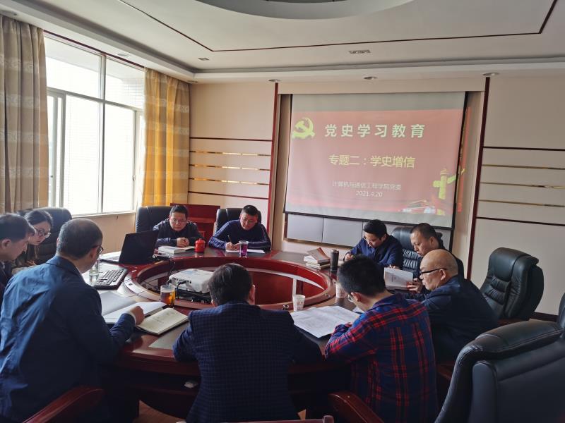 4月20日上午,计通学院党委在理科楼B502召开党委中心组会议,开展了“学史增信”第二专题的学习研讨。院党委书记刘宏伟主持学习研讨会,党委理论学习中心组全体成员参加,校党史学习教育巡回指导第五组到场指导。