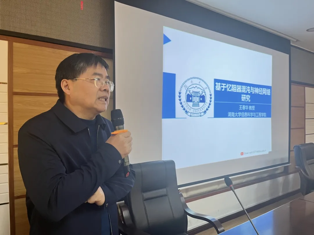 2021年11月13日,我院有幸邀请了湖南大学信息科学与工程学院的王春华教授来校作“基于忆阻器混沌与神经网络研究”的学术讲座。此次讲座在云塘校区理科楼B311顺利举行,我院张锦院长、研究生导师余飞老师、计通学院2019级和2020级研究生等人出席并聆听了该讲座。