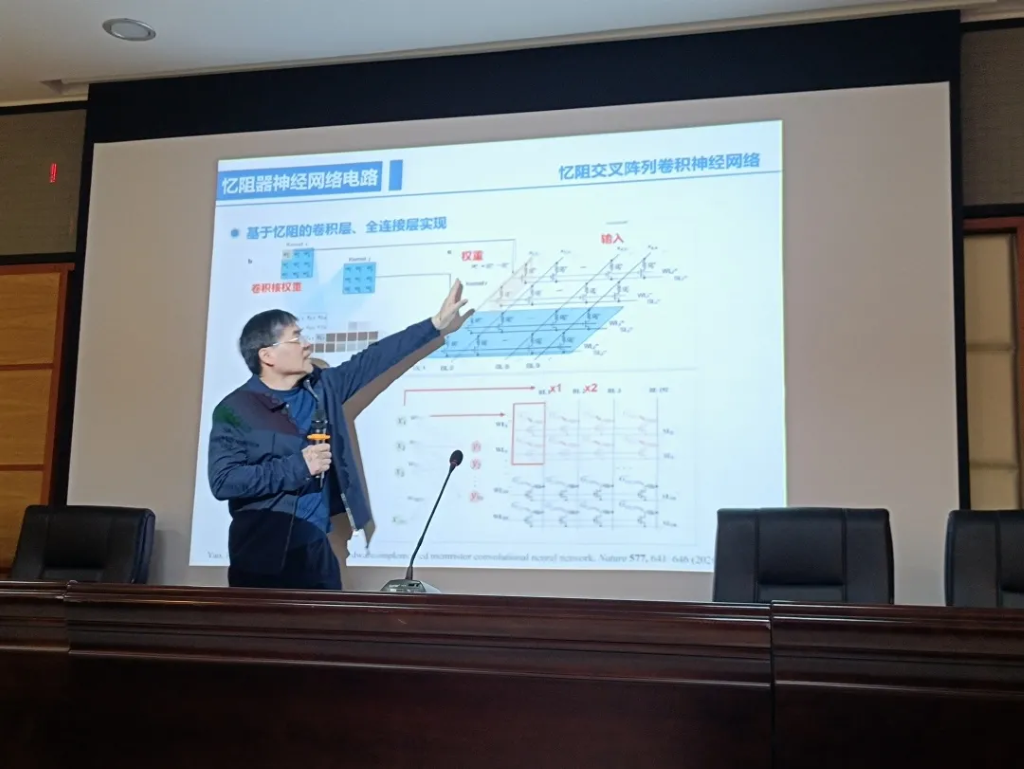 会议伊始,张锦院长简单介绍了王春华教授,并对王教授的到来表示热烈欢迎。随后,王春华教授对我院师生的到来表示感谢,再重点从忆阻器介绍、忆阻器混沌电路、忆阻器神经网络混沌动力学、忆阻器神经网络同步、忆阻器神经网络电路实现五个方面进行了详细介绍。王教授的讲解生动形象,深入浅出,首先先简要介绍了最基本的忆阻器的概念、忆阻器三大本质特性、HP忆阻器导电机理、数学模型及其符号介绍,让大家对这个领域有大致的了解。随后以忆阻器混沌电路的非线性特性作为切入点给同学们详细阐述了基于忆组的Chua混沌电阻、忆组替换线性电阻、多项式忆阻模型、多分段异阻模型以及多数阶忆阻器混沌电路等,王教授还用数据模型分析和说明了他们之间的联系与区别。此外,他还为我们详细地介绍了计算神经动力学的发展历史,他从神经动力学的新建模型、放电模式研究、混沌动力学研究三个阶段切入主题,让我们了解到忆阻器神经网络混沌动力学的忆阻仿生功能的突出功能和磁通特性对场景与数学建模构建的重要一环。他又对动力学的多种办法进行分析,例如同步分析,稳定性分析,平衡点分析等让基于多稳态忆阻器的神经网络动力学分析更具有极端多稳定性,放电多稳定性。最后,王教授对“忆阻器神经网络混沌动力学”方向进行了展望,并表示该方向在未来也必定会成为一个非常有价值的研究方向,如若有同学对该领域研究感兴趣,可阅读此篇综述: