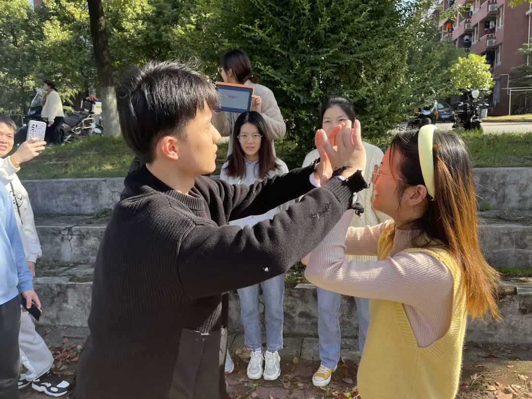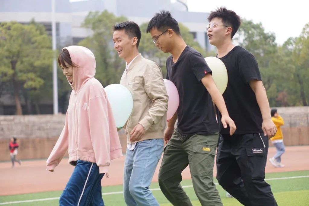 拔河的赛场上,几支参赛队伍经过激烈的层层厮杀、轮轮筛选,在研一研二的两个年级分别诞生了三支最强战队;在单脚火车跑环节,大家大声呼喊着“一二一二一二”,响亮的口号、整齐的步伐,又或者是东倒西歪的让气球掉下而被原地罚站;前呼后拥追逐赛是对大家耐力的考验,也是大家的默契展现,大家紧紧的靠在一起,团结合作、勇往直前,围着一个共同的目标前进,大家都从未放弃,一直坚持走到终点;在托球接力比赛上,大家更是用尽浑身解数去托球,无奈小小的乒乓球不听话,是大干一场还是求稳慢行,每个同学都有不同的选择;最后在你画我猜环节,搞笑却又认真的表演,或手忙脚乱百思不解,或配合默契心有灵犀,大家捧腹大笑而自己也乐在其中。