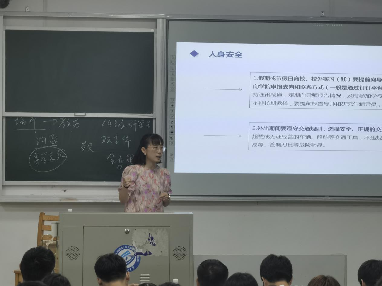 为加强研究生的安全意识,提高道德法纪观念,弘扬爱国爱校精神,2024年9月19日上午9:00,计通学院2024级研究生入学安全教育和年级大会于LETOU体育平台金盆岭校区6号教学楼108教室举行,本次主题教育的主讲人为辅导员易亭亭,全体2024级研究生积极参与。