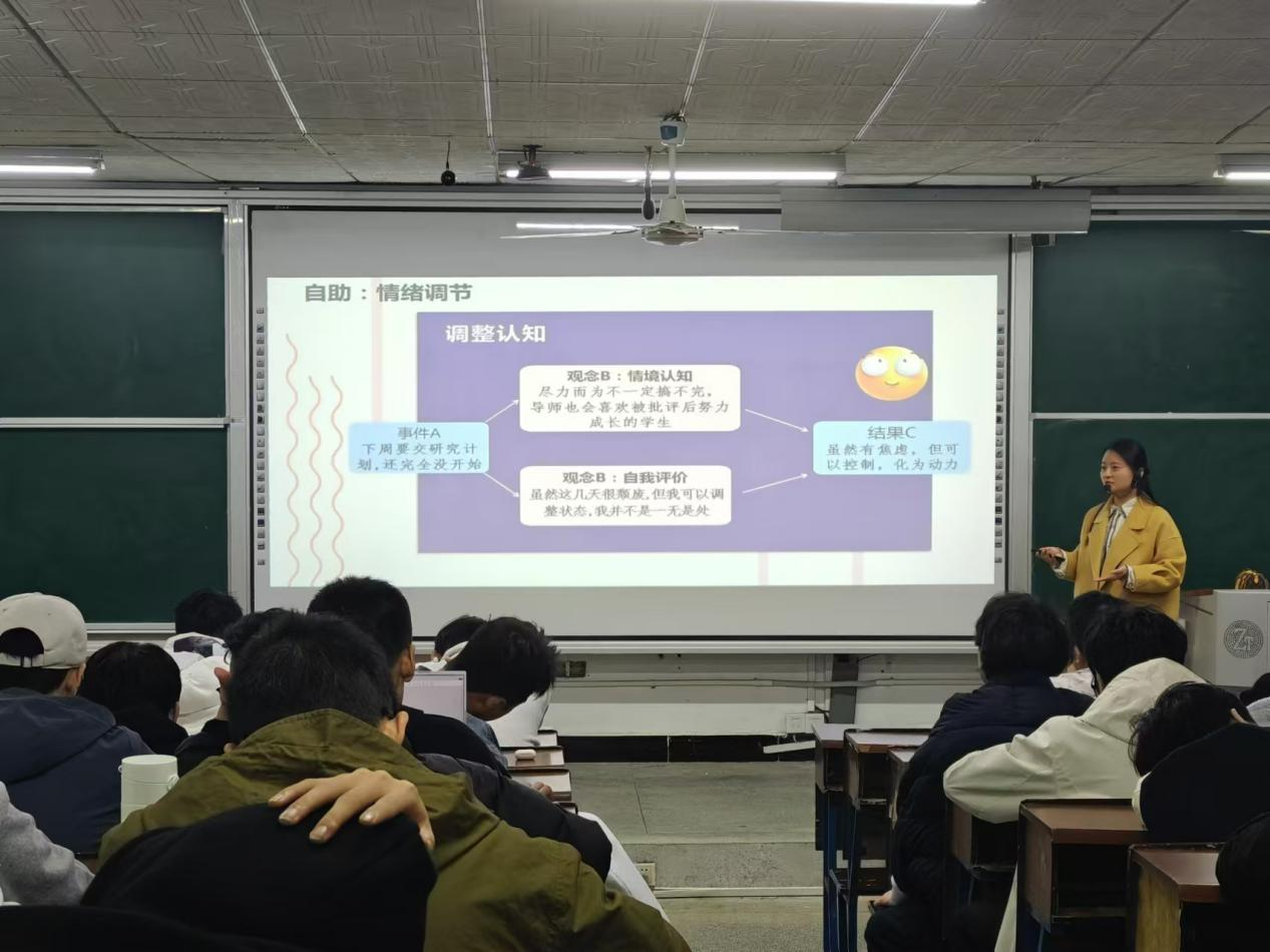 11月21日晚,计通学院在金盆岭12-116组织研究生新生心理健康专题培训。心理辅导员潘枝花主讲,24级研究生参加。