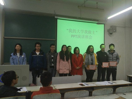 活动开始,主持人介绍了担任评委的五名代表:两位嘉宾和副部长郭守睿以及两名心理委员代表。随后主持人宣读了本次评选会的主要目的——评选出PPT演讲优胜者,并简要介绍了PPT评选打分的规则和制度。然后,评选工作正式开始,优秀PPT制作小组代表轮番上场展示精彩的PPT演讲。一共17名选手,风格迥异,或清新自然,或幽默诙谐,或感情深沉,给本次会次展示了17场绝妙精伦的演讲表演。随着时间推移,本次评选渐渐接近了尾声,各位小组代表,获奖者们终是以微弱的优势站在领奖站上。最后,以黄黎明老师对本次会议总结,宣告结束。