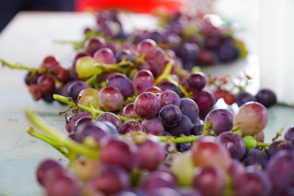 考察结束后,实践团来到了休息区,秦会长亲自挑选、摘下了几串紫红葡萄供实践团品尝,剥完皮的葡萄圆润柔软,口感极好。离开之际,秦会长笑着说:“欢迎大家明年带更多同学来道县体会风土人情,品尝无污染的、地道的葡萄和火龙果”。