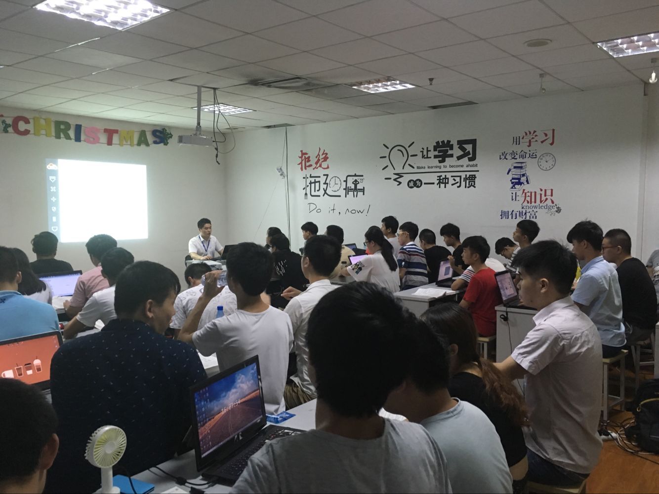 今天是H3C SE广域网课程第一天的学习,报名的人数也快接近了NE课程的两倍!不大的教室里面坐满了人。教室里面又热又闷,不过这丝毫没有影响到同学们学习的热情,全都在认真地听课。因为SE的内容相比于NE课程更上升了一个台阶。今天学习的知识点没以前多,但是每个都很难。