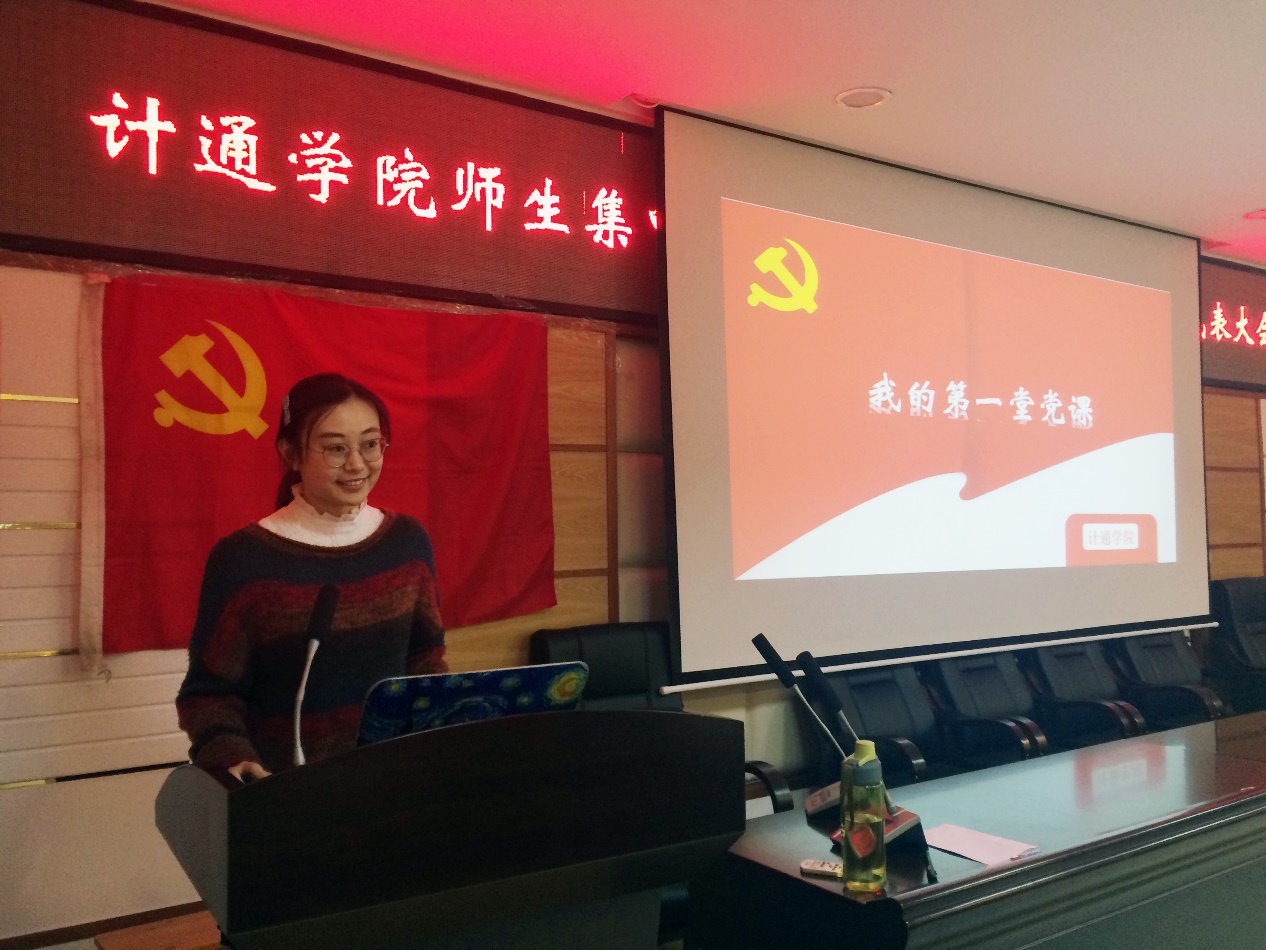 2017年10月20日晚,计通学院17级学生在理科楼B311上了大学的第一堂党课。党课由16级研究生党支部书记周万锴主持,本科生第一、二、三党支部负责人莫露莎、董妍君、文凰分别授课。