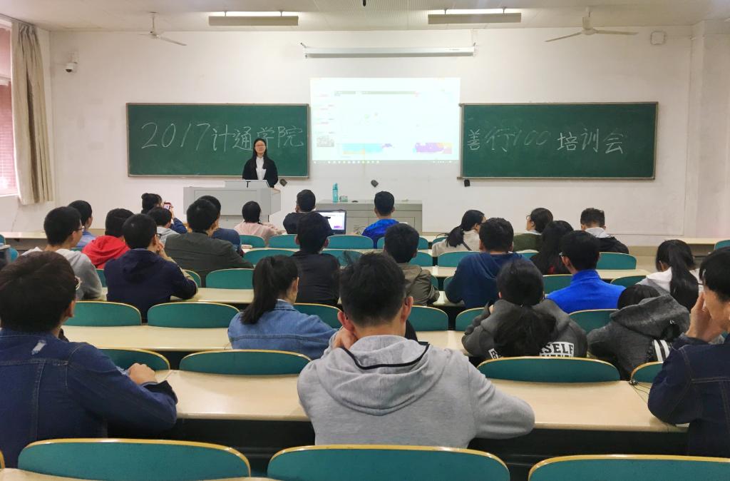 为了使大学生志愿者更加深入地了解“善行一百”,顺利开展劝募活动,计通学院分团委学生会青志协于11月7日下午在综教A106召开“善行一百”培训大会。大会由青志协部长邹慕兰主持,青志协全体成员和计通学院志愿者参加。