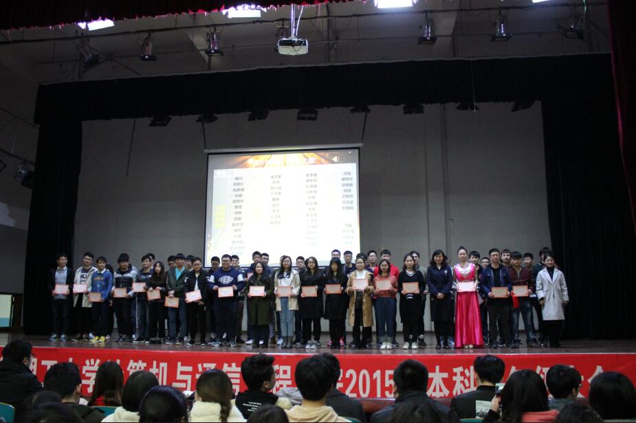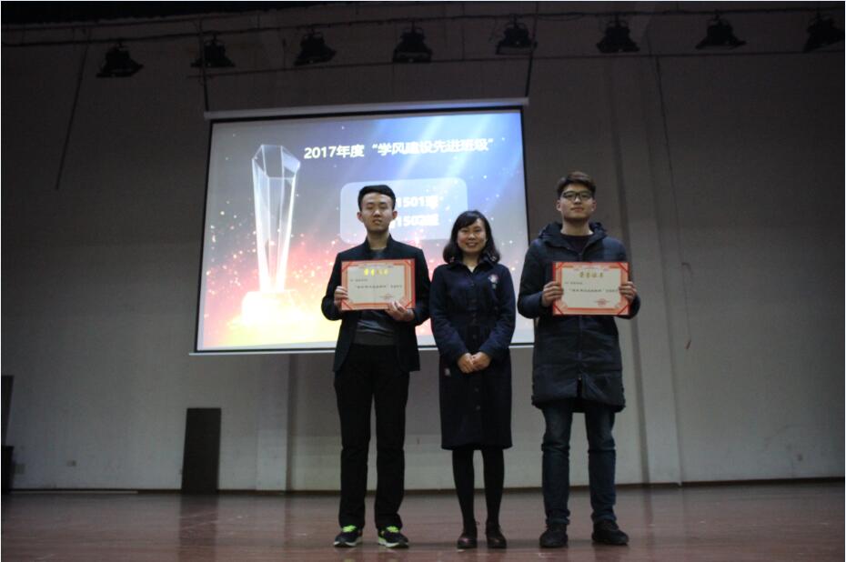 会上举行了颁奖典礼,表彰了2017年度15级先进个人和先进集体。韩珂等43名同学被评为“学习之星”,兰林涛等30名同学被评为“学习标兵”;网络1501、1502班被授予“学风建设先进班级”荣誉称号;通信1501班因为高达97%的四级通过率,被评为“英语四级之星”。
