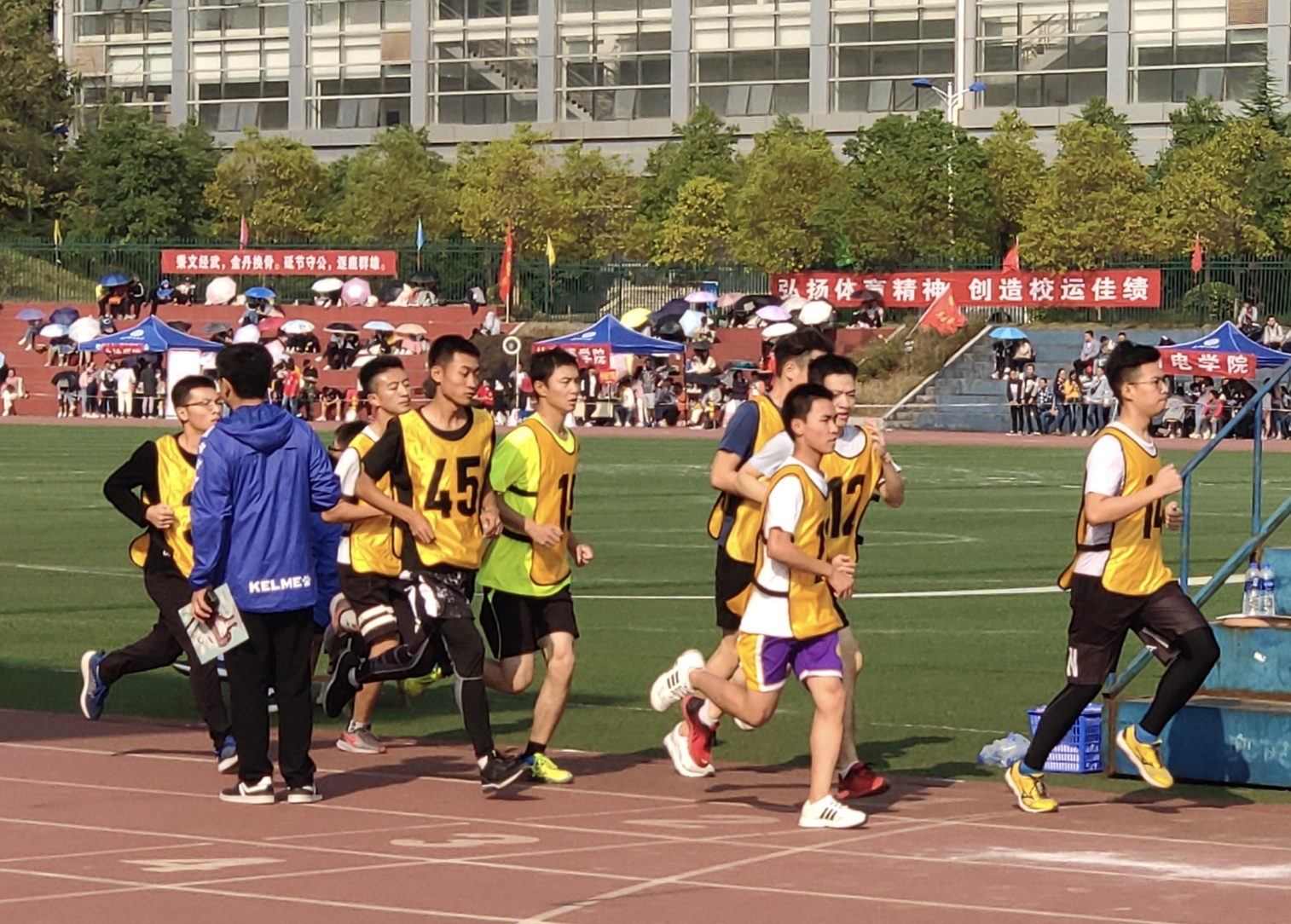 比赛的正式开始,让整个赛场沸腾了起来。运动员们尽情奔驰,看台上观众的加油助威声此起彼伏、不绝于耳。志愿工作者们也在积极维护赛场秩序、并为参赛者们提供细致入微的服务。比赛过程中,我院运动员们凭着顽强的意志与坚定的信念,喜报频传。男子100米、女子3000米、男子800米等多个奖项纷纷纳入计通健儿囊中,拉拉队全体成员更是在计通大本营敲响战鼓,为每位计通健儿呼唤呐喊。
