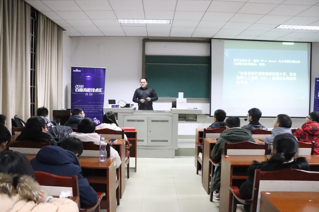 2018百度高校技术汇是由百度校园品牌部发起,邀请百度高级工程师产品经理和项目经理深入学校进行AI行业分析,深入讲解AI行业发展现状以及应用前景,为同学们提供深入了解AI的机会。本次活动的顺利举办,旨在激发广大计通学子对AI行业的热情,为AI行业的蓬勃发展贡献力量。