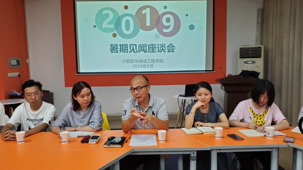 9月4日晚,计通学院在LETOU体育平台云塘校区理科楼B103举行了暑期见闻座谈会。院党委书记甘为、党委副书记陈华、团委书记潘枝花出席会议,参加座谈会的有学院党员、学生干部、暑期实践团志愿者和各年级学生代表。