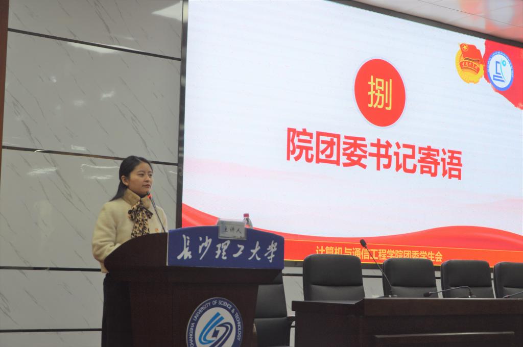 12月29日下午,计通学院于金盆岭校区四教报告厅举办“不忘初心、牢记使命”主题教育汇报会暨第十期“青马班”结业典礼。本次会议由组织部付航主持,计通学院团委书记潘枝花出席本次会议,团委学生会全体成员、计通学院全体团支书参加。